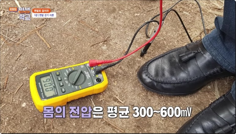 그래서 맨발로 걷는 순간 땅속에서 음전하를 띤 자유전자가 몸 안으로 흘러들어와 우리 몸에 있는 양전하를 띤 활성산소와 만나서 중화되고 소멸되는 것입니다.
