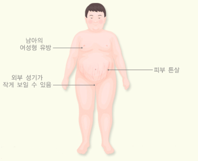 ● 대체로 평균보다 키가 작습니다. 비만으로 인해 성장판이 일찍 닫힐 수 있어 평균보다 키가 작을 수 있습니다.
