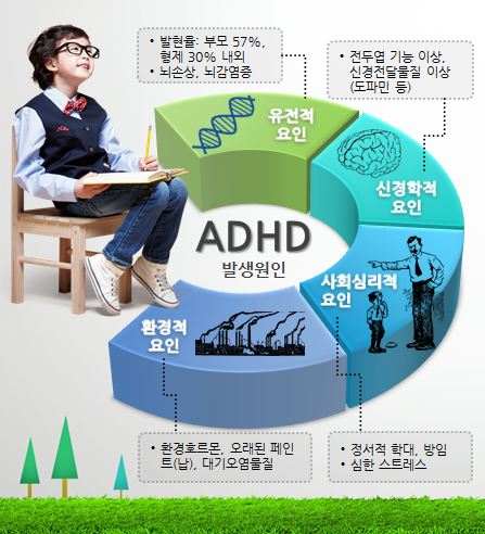 ● 뇌 손상, 뇌의 후천적 질병, 미숙아 등이 ADHD의 원인이 되기도 합니다.